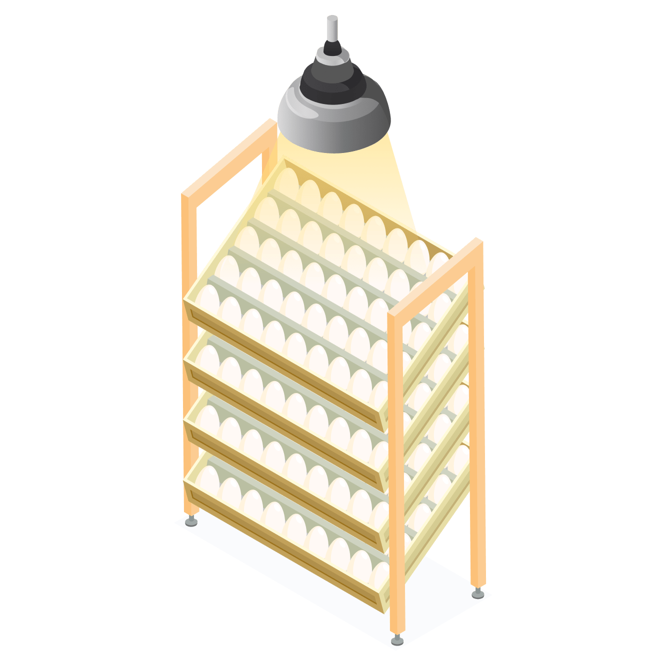 Еженедельно в инкубационные шкафы закладывается около 2,5 миллионов яиц. Инкубационный период составляет 21 день.